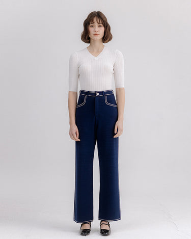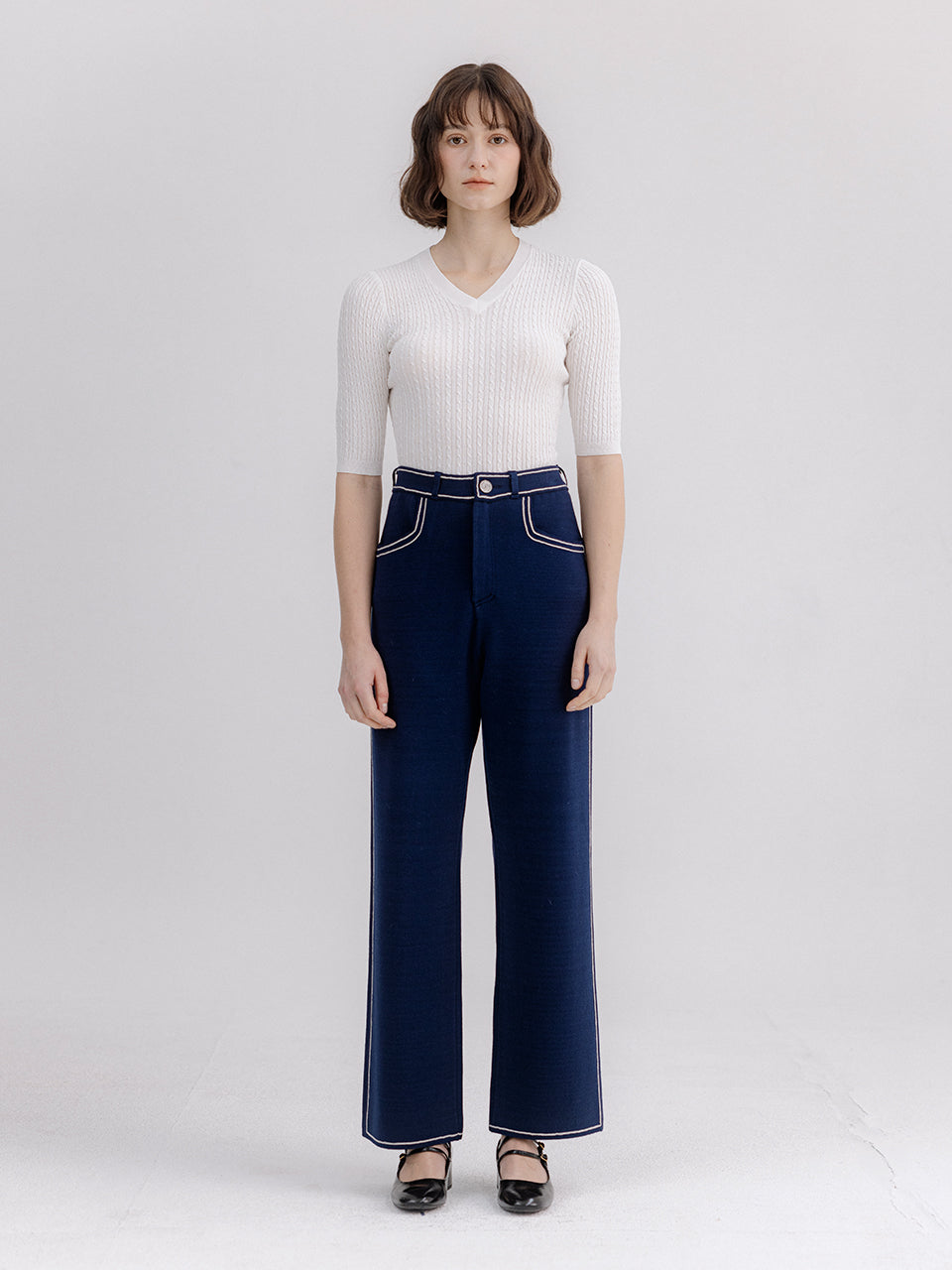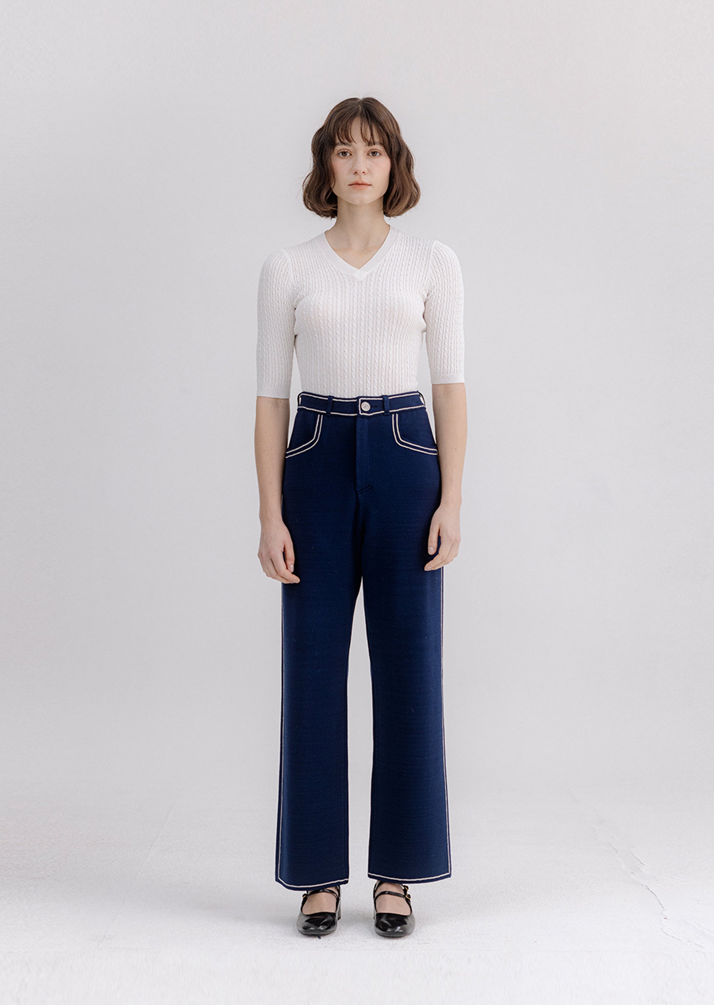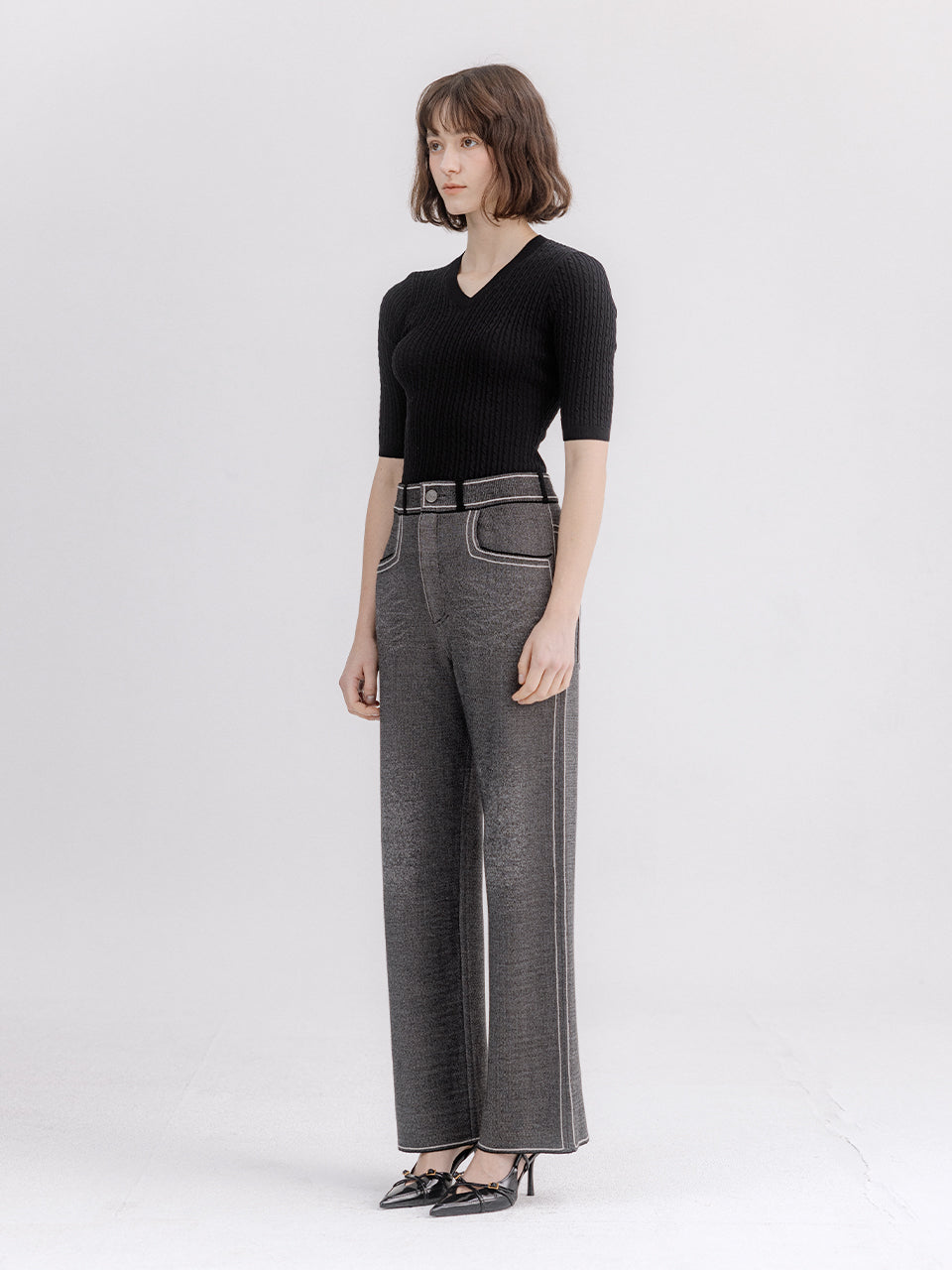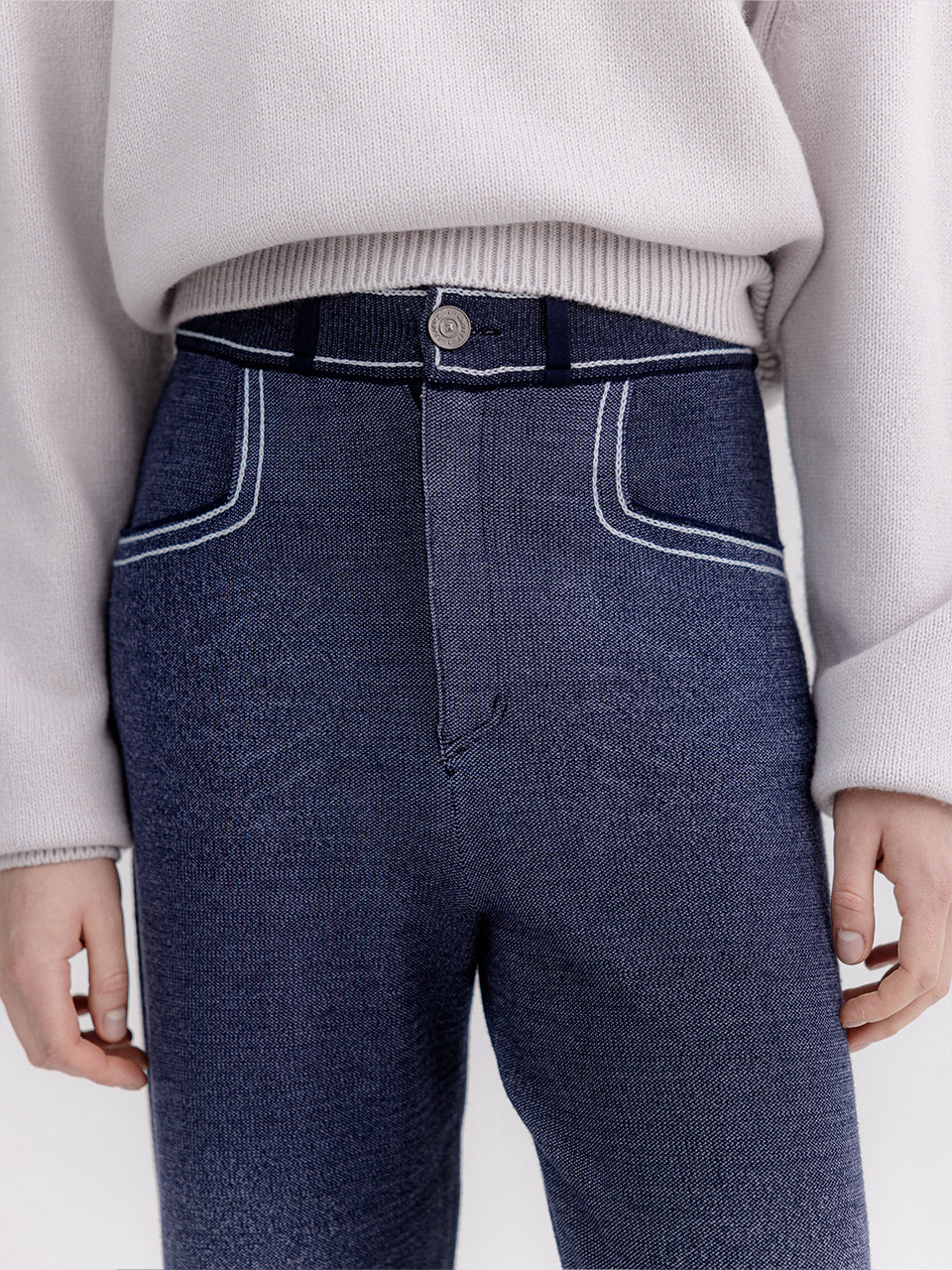 These straight knit jeans bring together the classic look of denim with the comfort of knit fabric. Made from soft, stretchy yarn with a subtle washed finish, they feel relaxed yet hold their shape beautifully.
